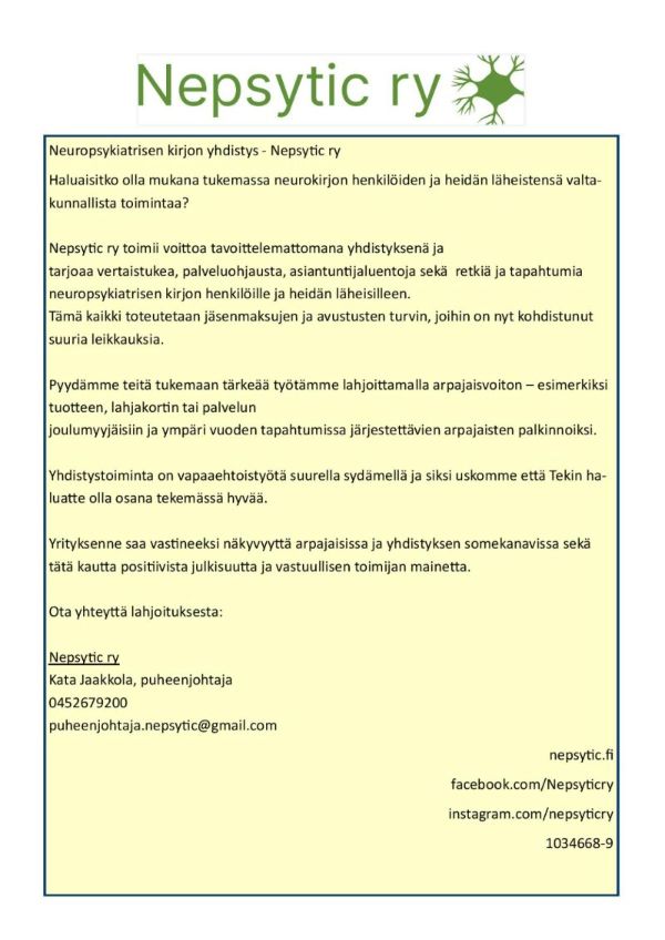 Yhdistyksellä on myös Instagram-tili osoitteessa: https://www.instagram.com/nepsyticry/